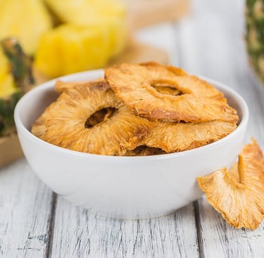 Sun-dried Fruits, including pineapple and jackfruit.